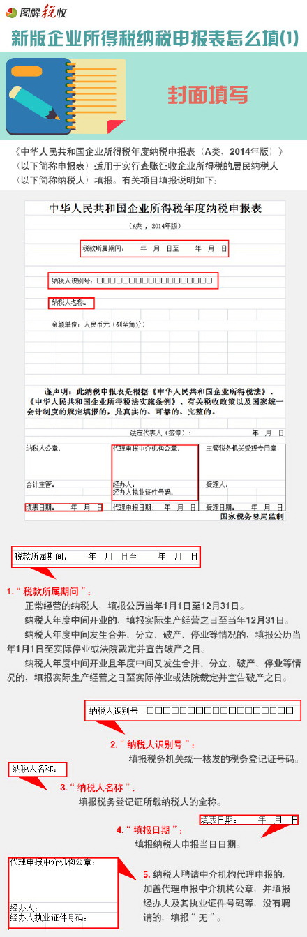 2015年(2014年度)企業(yè)所得稅納稅申報(bào)表填寫方法(1):封面填寫方法,如下圖: